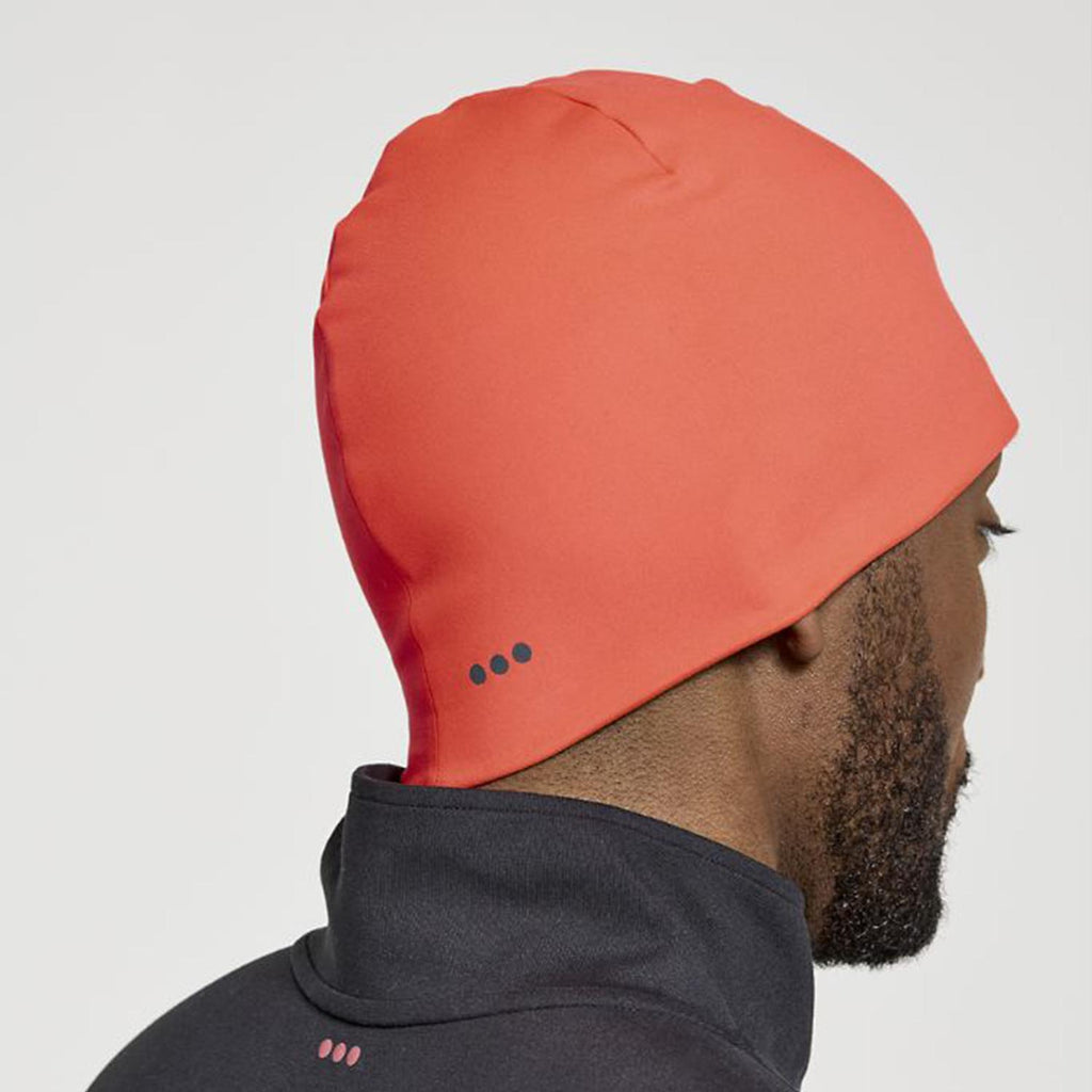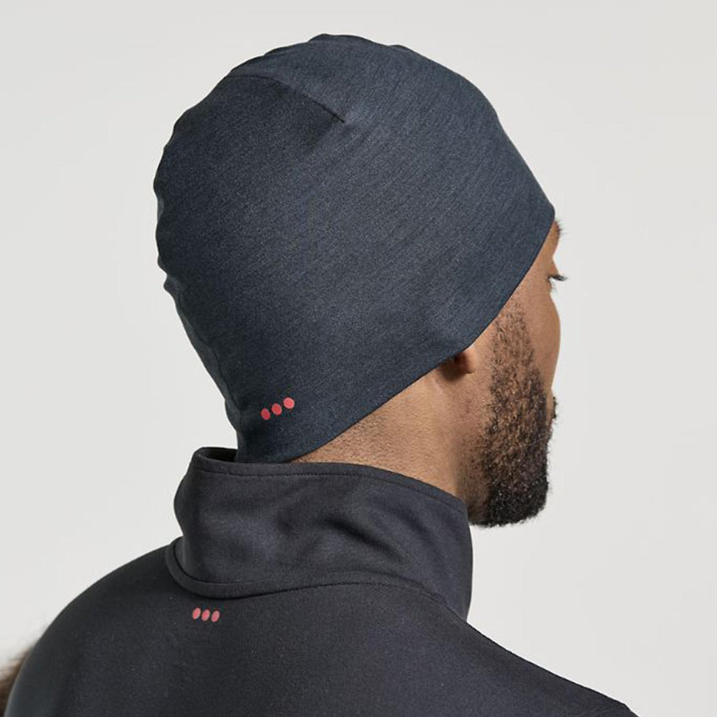 Day-to-night-performance. Looking for something you can throw on with ease? Check out the Solstice Beanie, a partially recycled layer with reflectivity that'll keep up no matter the weather. Made with a fleece material to keep you comfortable, it's also contoured to protect your ears against the cold.