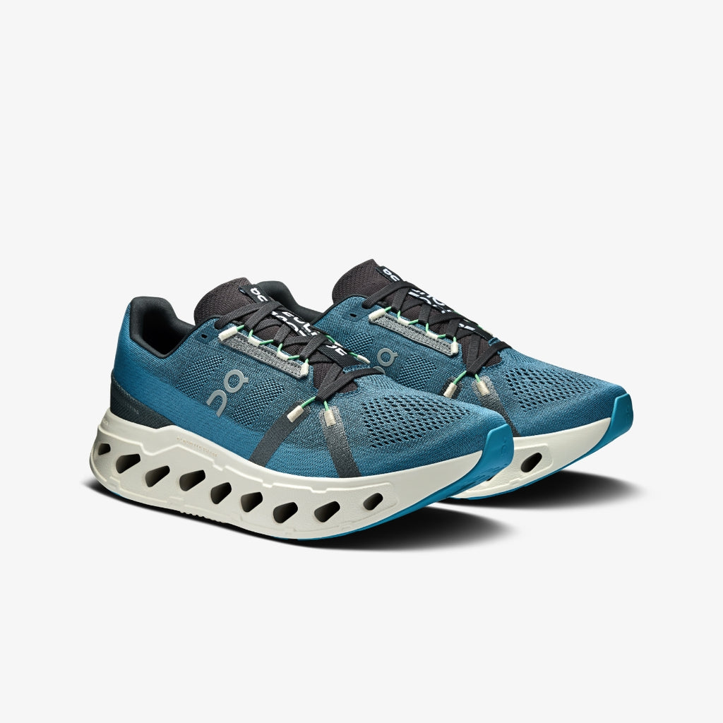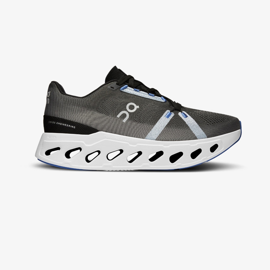 The Cloudeclipse isn't just eye-catching. It's also water-saving. That's because the shoe's yarn is dope dyed, a coloring process that uses 90% less water than standard dyeing techniques. For bonus points, the yarn itself is made using 100% recycled polyester. Win, win.Made using Helion™ superfoam, the ultra-thick midsole protects against heavy impact without weighing you down. This means happy joints and fresh legs – even on the longest runs. A flexible Speedboard® adds stability and guidance, while the engineered mesh upper delivers a breathable and secure fit.