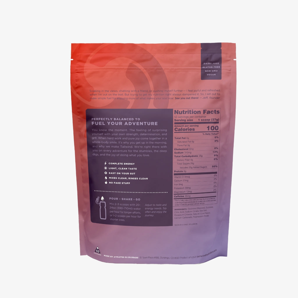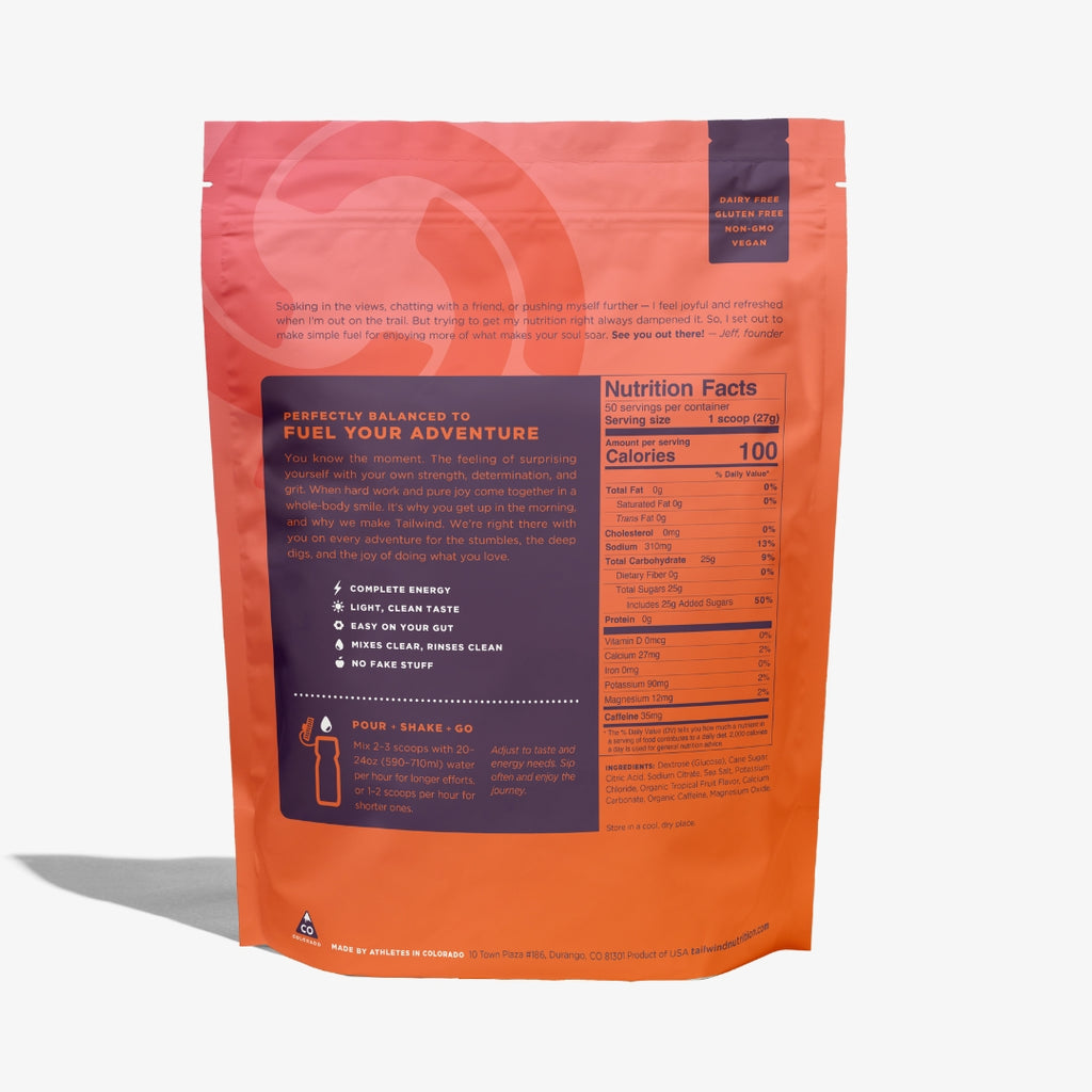 - Complete calories, electrolytes, and hydration: Ditch the gels, chews, and salt pills and go all day with just Tailwind!